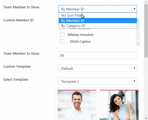 Puedes filtrar el miembro del equipo para que se muestre a todos, por identificación específica o por categorías específicas.